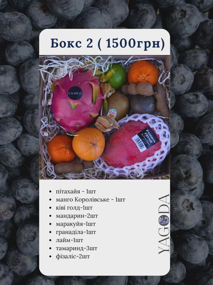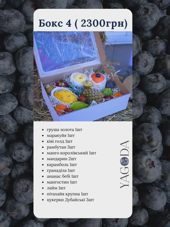 Магазин YAGODA виник з ідеї зробити щось яскраве, смачне й незвичне для тих, хто хоче дивувати. Ми спеціалізуємось на створенні екзотичних боксів із фруктами, які не тільки виглядають ефектно, а й дарують нові гастрономічні враження.